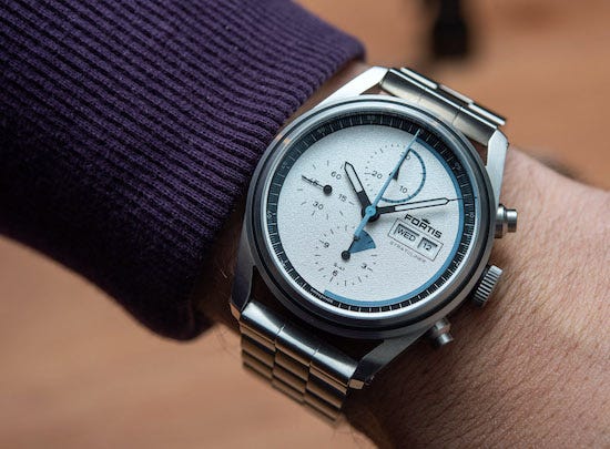 The thing that jumped out at me: the Fortis Stratoliner is not exactly a paragon of legibility. There are no hour markers. It’s a chronograph-centric timepiece. To time what exactly?